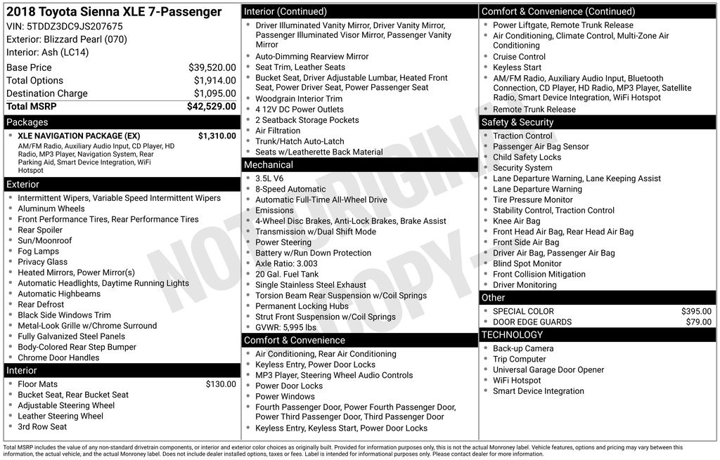 2018 Toyota Sienna XLE Premium 7 Passenger